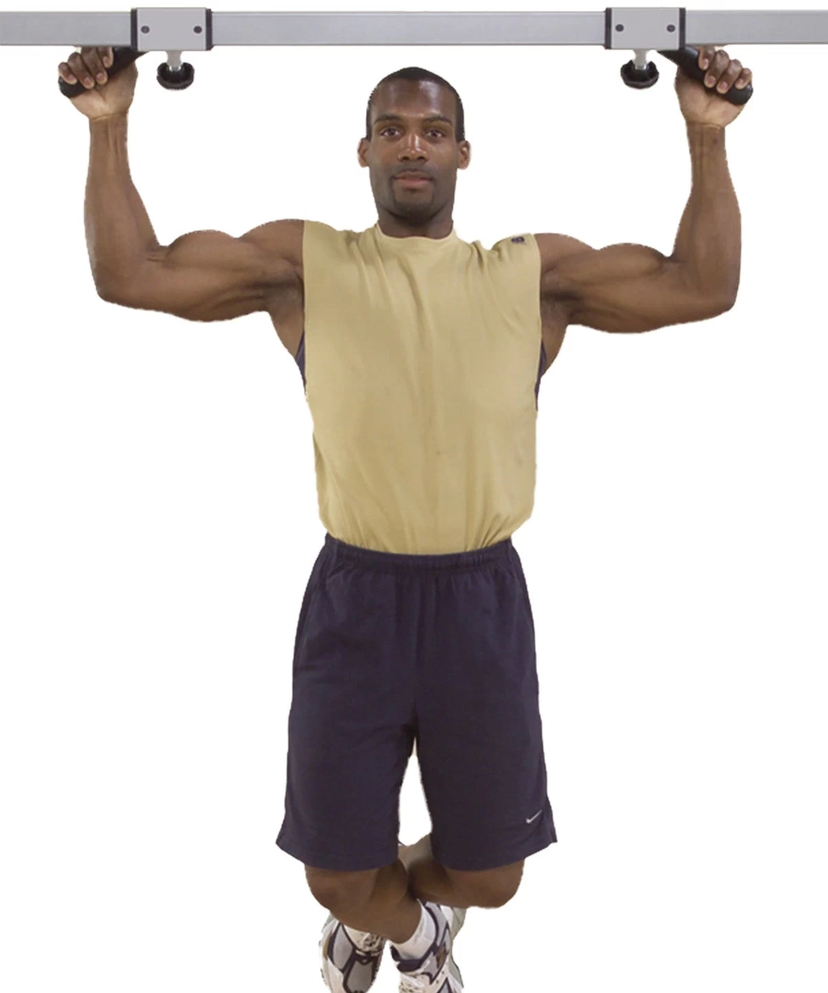 Lock-down dual grips with infinite variable width spacing that allows full extension and contraction when doing chin-ups and lat pull-ups.