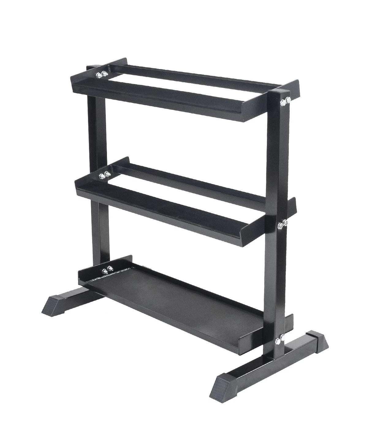 Ergonomically angled dumbbell tiers provides easy access for larger dumbbells, whilst the new Kettlebell plate sits flat.